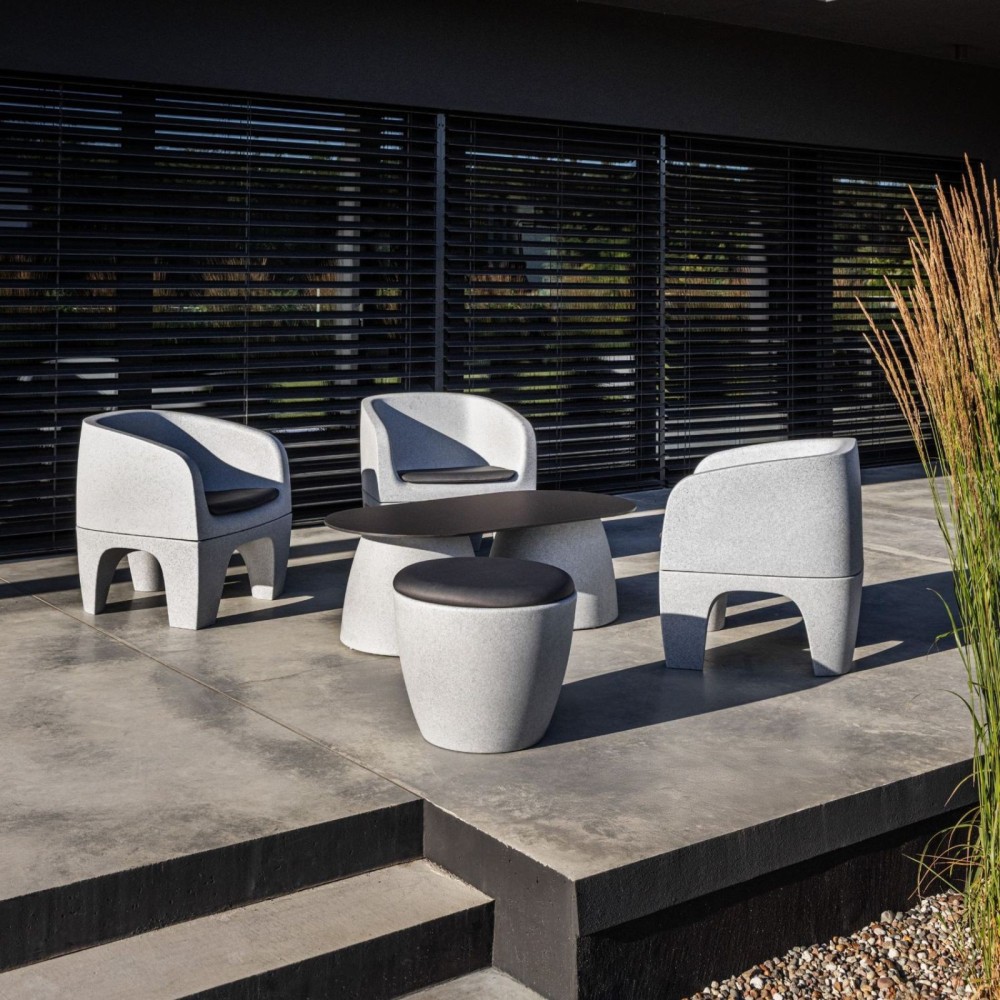 Le tabouret convertible Gummy Bear apporte modularité et cohérence esthétique aux aménagements extérieurs contemporains.