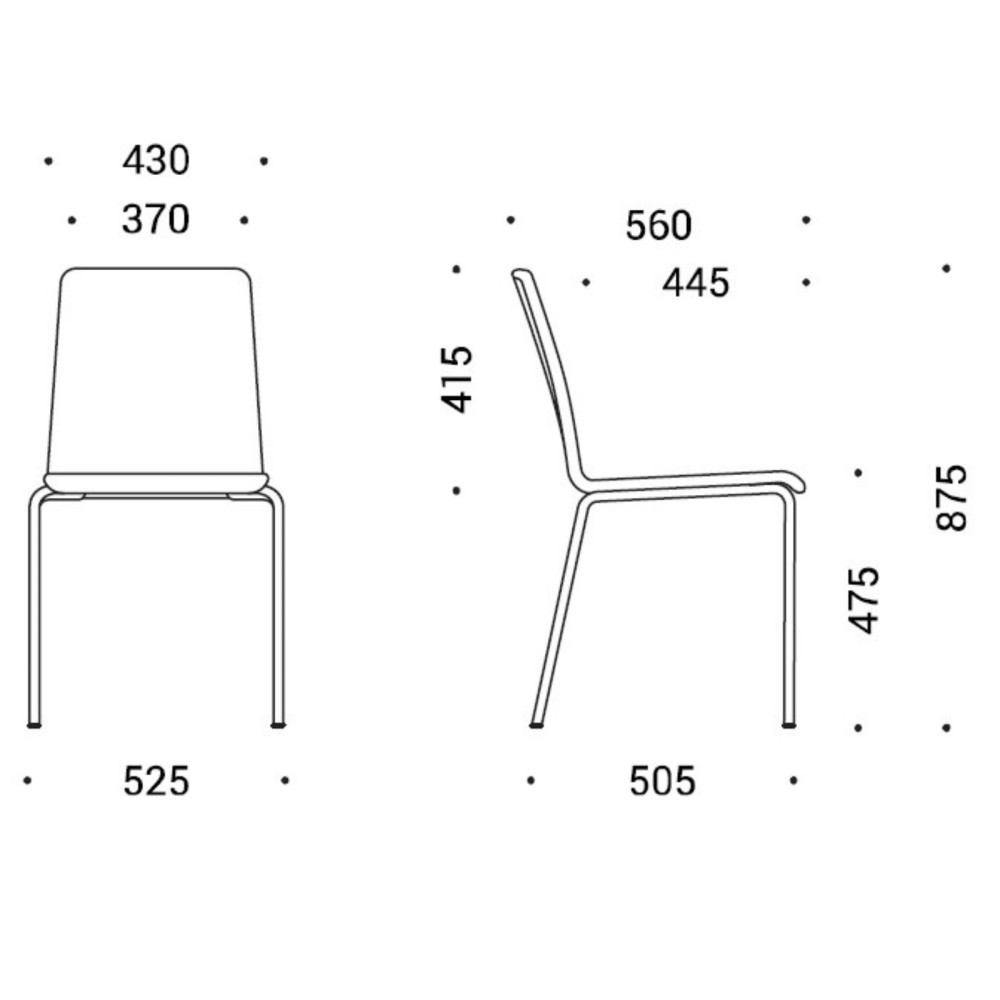 La coque est fabriquée en contreplaqué moulé, disponible en placage bois (hêtre clair ou foncé, chêne, stratifié blanc ou noir teinté). Elle est résistante à l’usage intensif et très facile à entretenir avec un simple coup de chiffon, il suffit à nettoyer la surface. Le piètement tubulaire en métal, peint ou chromé, garantit une excellente stabilité et une longue durée de vie, même en environnement professionnel exigeant.