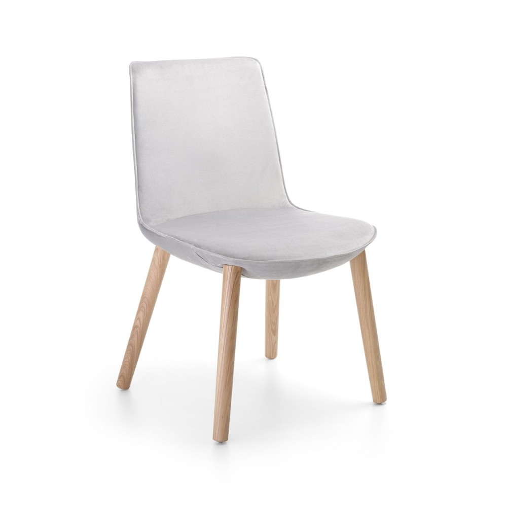Le piètement à quatre pieds en bois confère à la chaise Lumi une identité chaleureuse et intemporelle. Cette base naturelle contraste élégamment avec les lignes contemporaines du baquet, tout en assurant une excellente stabilité à l’usage.