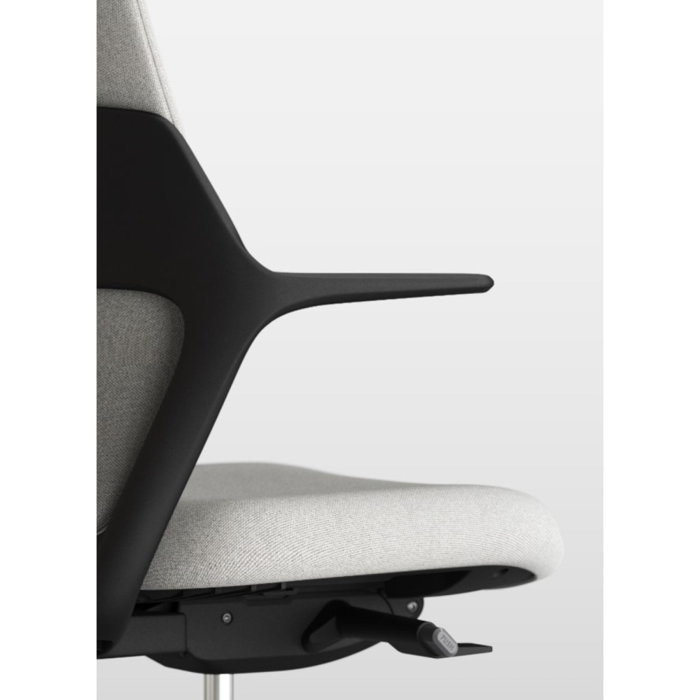 Les accoudoirs sont disponibles avec ou sans rembourrage PU. Leur finition est toujours assortie à celle du cadre pour une esthétique homogène. Les versions réglables apportent une grande liberté de mouvement, notamment pour travailler en mobilité ou pour les espaces de type coworking.