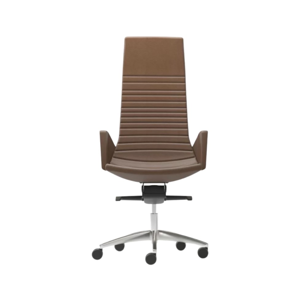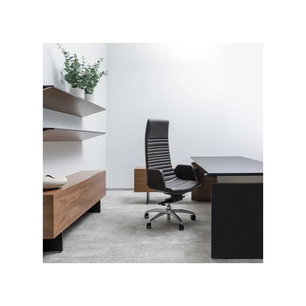 Son dossier de 900 mm épouse la courbe naturelle du dos pour un soutien efficace tout au long de la journée. Sa silhouette continue et ses lignes épurées s’intègrent parfaitement dans un bureau de direction moderne, sobre et élégant.