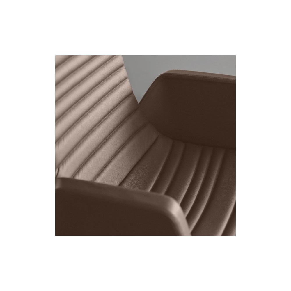 Les accoudoirs fixes sont habillés dans le même revêtement que l’assise, qu’il s’agisse de cuir ou de tissu. Leur rembourrage généreux apporte une sensation de cocon, tout en renforçant le confort et le raffinement du siège. Tu peux ainsi choisir la finition qui correspond le mieux à ton style ou à ton ambiance de bureau.