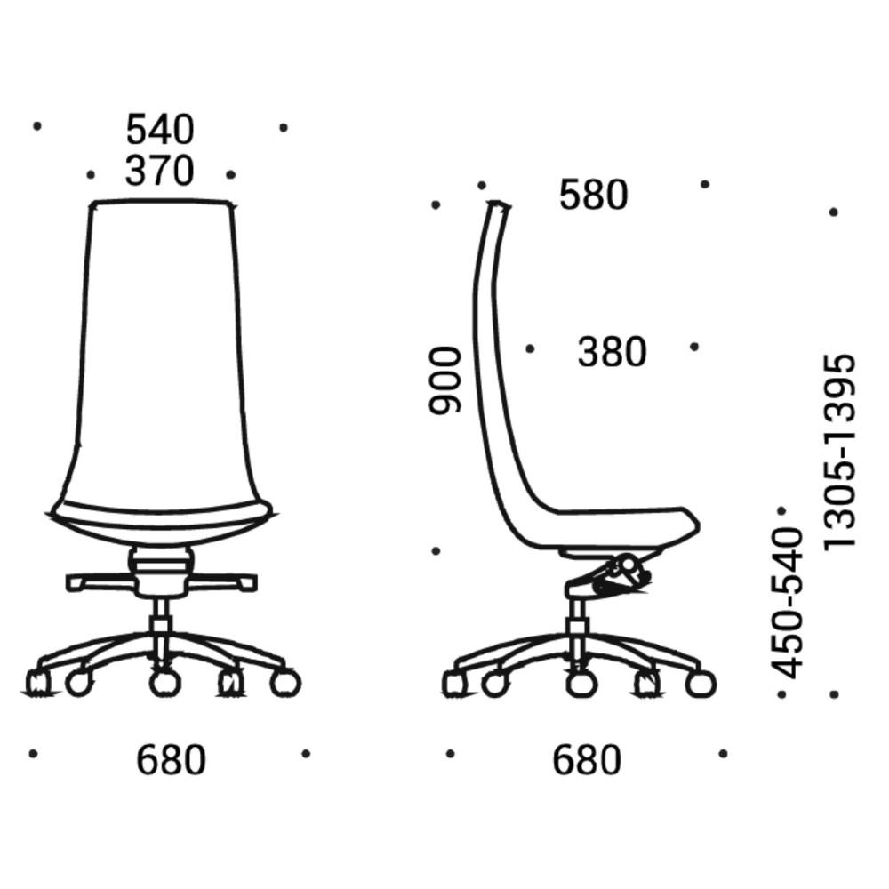 - Réglage de la hauteur d’assise par vérin à gaz (plage de 90 mm)