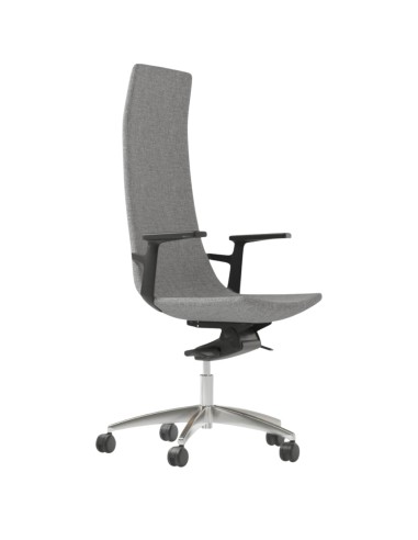 Le dossier lisse en polyuréthane moulé apporte une esthétique moderne, sans surcharge visuelle. Son profil fin épouse naturellement la forme du dos, favorisant une posture droite et équilibrée. Les accoudoirs en plastique noir renforcé de fibres de verre apportent un contraste minimaliste et discret, parfait pour des espaces directionnels contemporains.