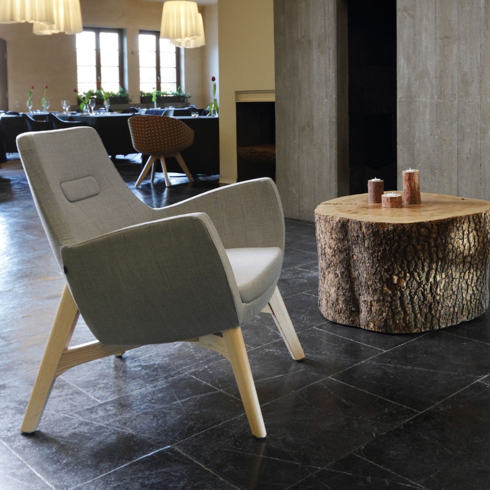 Le fauteuil Umm se distingue par son design organique et son confort enveloppant, dans un format bas idéal pour les espaces conviviaux. Son piètement en bois clair apporte une touche chaleureuse et authentique, parfaite pour un bureau, un hôtel ou un intérieur raffiné.
