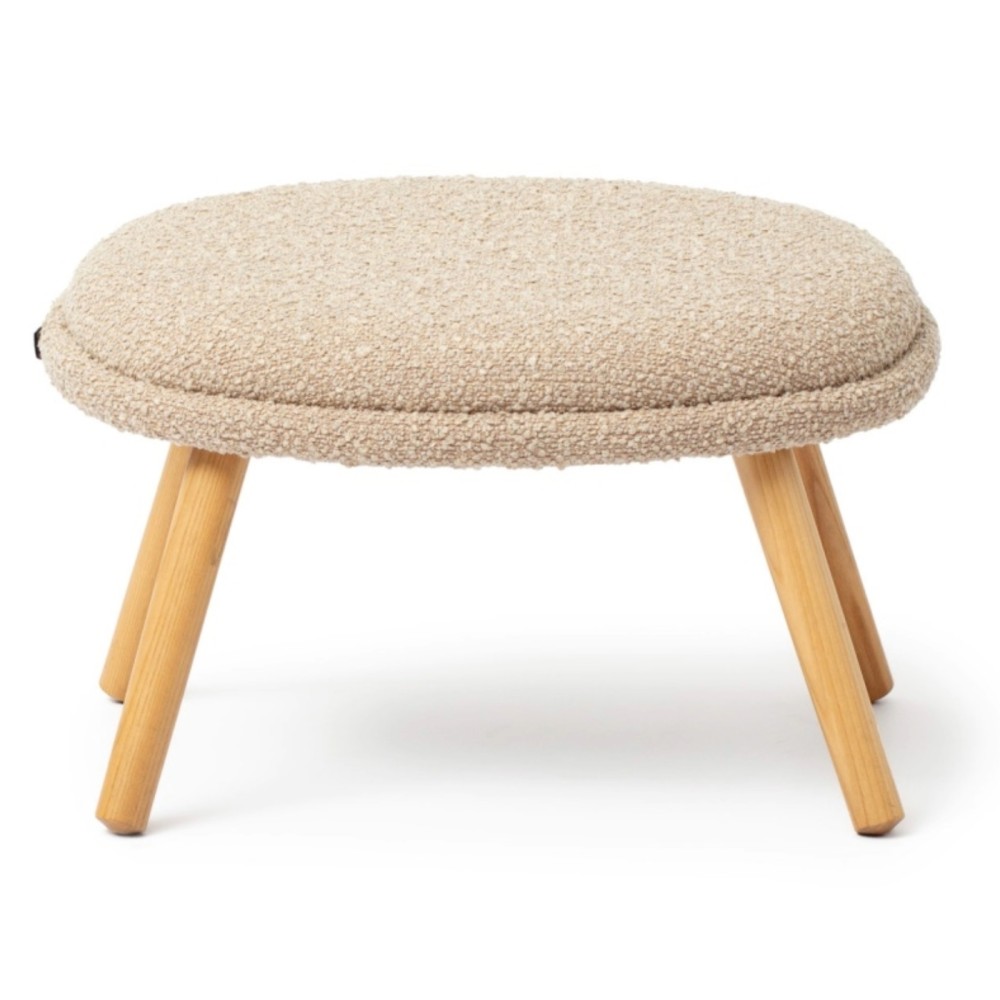 Le Vieni avec piètement bois combine élégance naturelle et confort. Sa structure en bois massif et son assise tapissée créent une pièce harmonieuse et intemporelle, idéale pour accompagner un fauteuil ou être utilisée seule comme assise d’appoint.