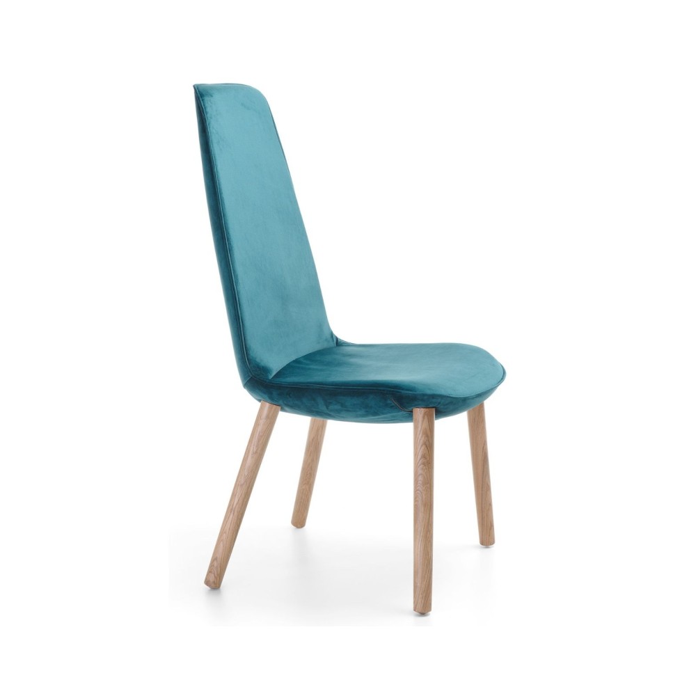 Le piètement à quatre pieds en bois confère à la chaise une esthétique naturelle et apaisante, renforçant l’identité lounge du modèle.