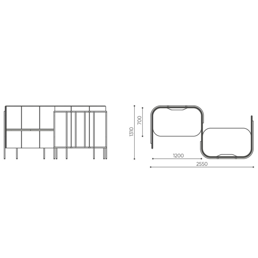 - Hauteur totale des cloisons : 1310 mm