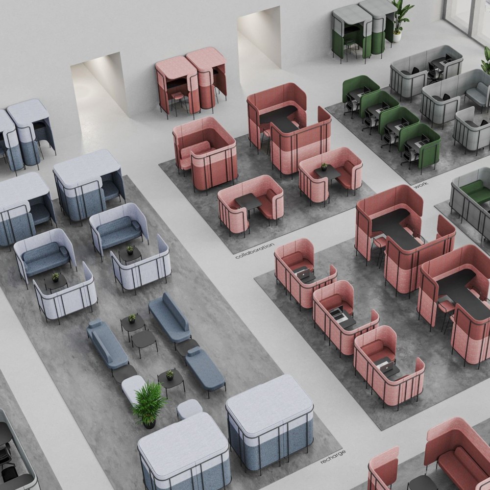 La collection Leaf Pod permet de composer des configurations adaptées aux besoins de ton entreprise : postes individuels, modules communicants, zones de coworking, alcôves de réunion… Tu peux combiner plusieurs POD pour créer un espace complet et harmonieux.