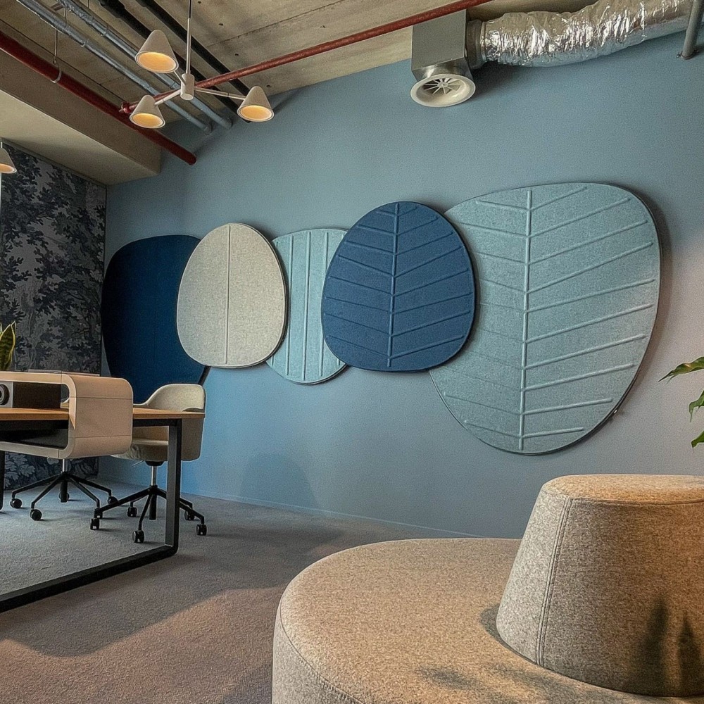 Avec sa forme de feuille organique, ce panneau mural s’inspire du monde végétal et permet de créer une atmosphère apaisante dans les espaces de travail. Il favorise le bien-être des collaborateurs tout en renforçant l’identité visuelle des lieux. Son revêtement textile apporte un rendu chaleureux et contemporain, parfaitement adapté aux bureaux modernes, espaces d’accueil ou zones lounge.