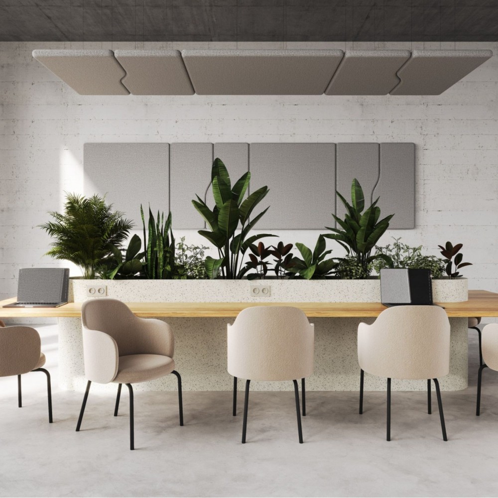 Avec sa forme carrée et ses angles adoucis, ce panneau offre un design simple et moderne. Il s’intègre naturellement dans les bureaux, open spaces ou espaces d’accueil et permet de créer des murs acoustiques harmonieux et professionnels.