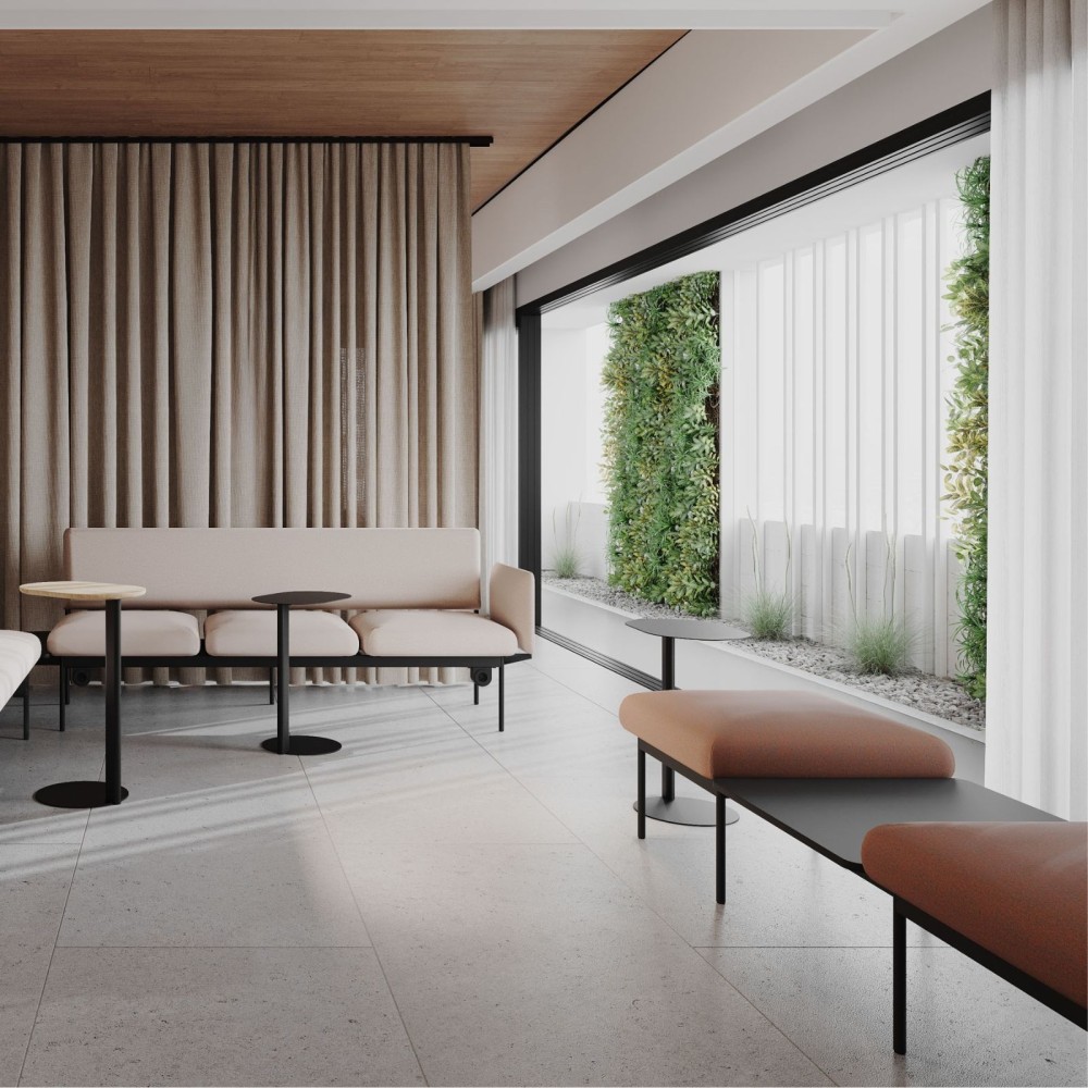 Ce banc est conçu pour être utilisé de manière indépendante ou intégré dans des configurations modulaires avec les canapés et modules Fora Care. Il se combine facilement grâce à son design minimaliste et ses proportions adaptées.