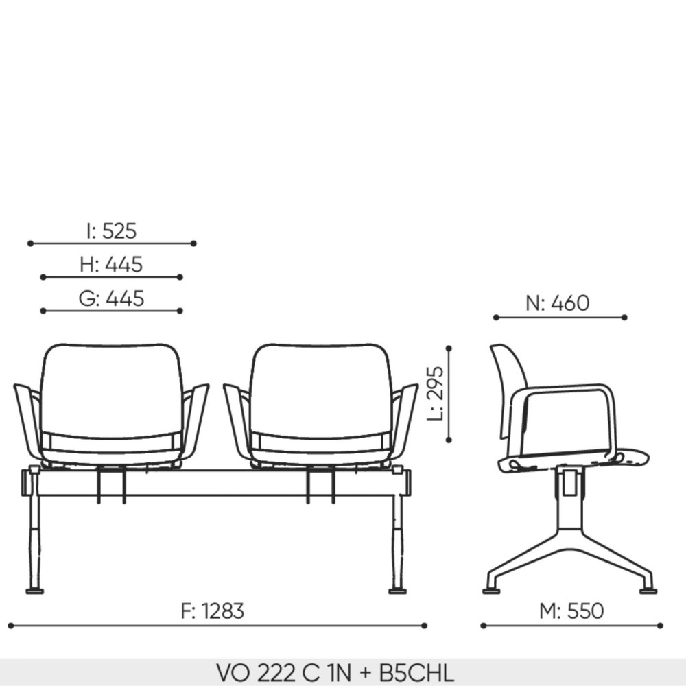 Le modèle VO 222 est proposé ici en version 2 places afin d’optimiser l’organisation des espaces d’accueil. Cette configuration permet de structurer efficacement les zones d’attente tout en conservant une implantation compacte.
