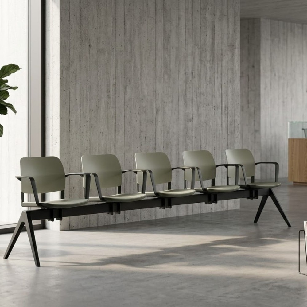 Le Volo VO 225 C est un banc 5 places avec accoudoirs arrondis qui encadrent mieux chaque siège. Tu obtiens une zone d’attente plus lisible, plus stable, et plus agréable à gérer au quotidien dans les espaces professionnels en Suisse.