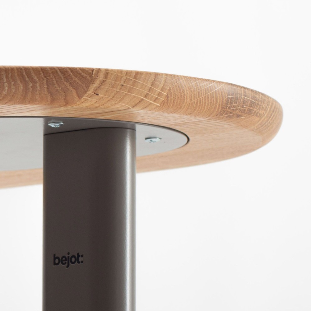 La structure en acier thermolaqué assure solidité et durabilité. Disponible dans les teintes de la palette RAL avec finition texturée, elle garantit une excellente résistance à l’usage intensif. La base circulaire est dotée d’un patin en feutre sur sa face inférieure afin de protéger les sols et d’éviter tout glissement.