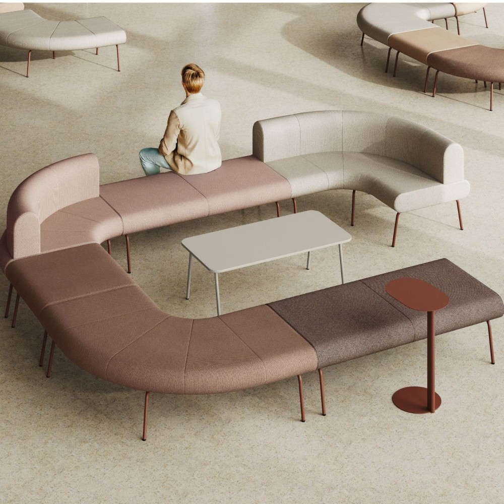 Sa structure en métal assure stabilité et durabilité tout en conservant une esthétique légère. Les lignes sobres du piètement permettent une cohérence visuelle avec les assises courbes et modules de la gamme Linje.