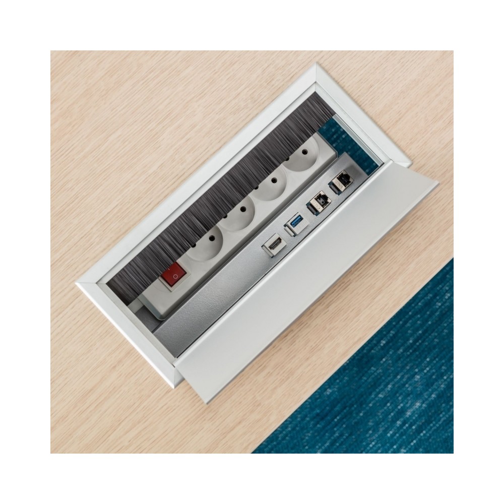 - 1 x top access au centre à l'arrière du plateau - inclus connectique : 4 prises suisses - 2x RJ45 - 1x USB - 1x HDM