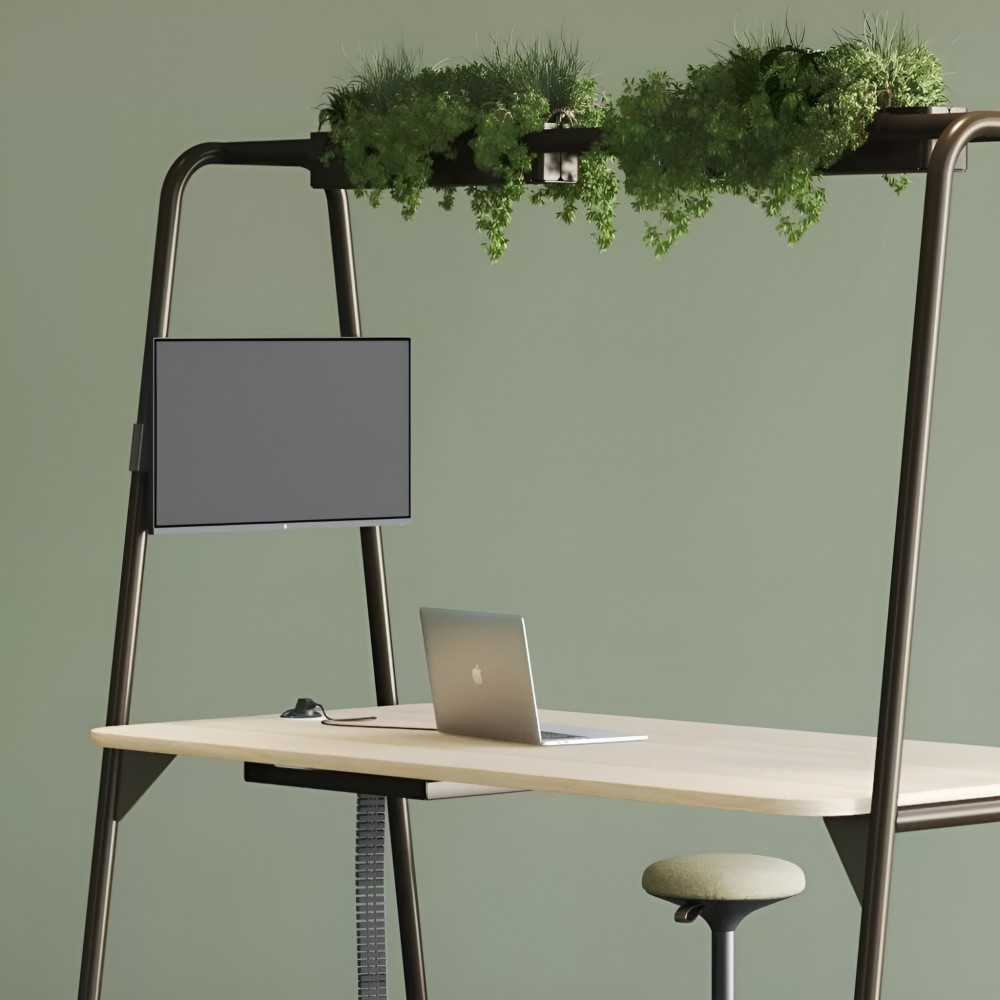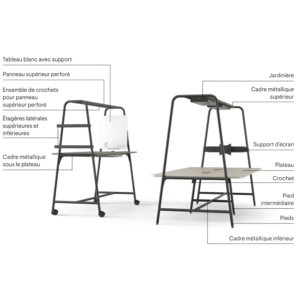 Avec sa structure tubulaire en métal peint par poudrage et ses plateaux aux finitions soignées (mélamine, HPL ou Fenix), cette table allie esthétique industrielle et légèreté visuelle. Les coins arrondis et les bords chanfreinés adoucissent l'ensemble pour créer une ambiance chaleureuse et collaborative.
