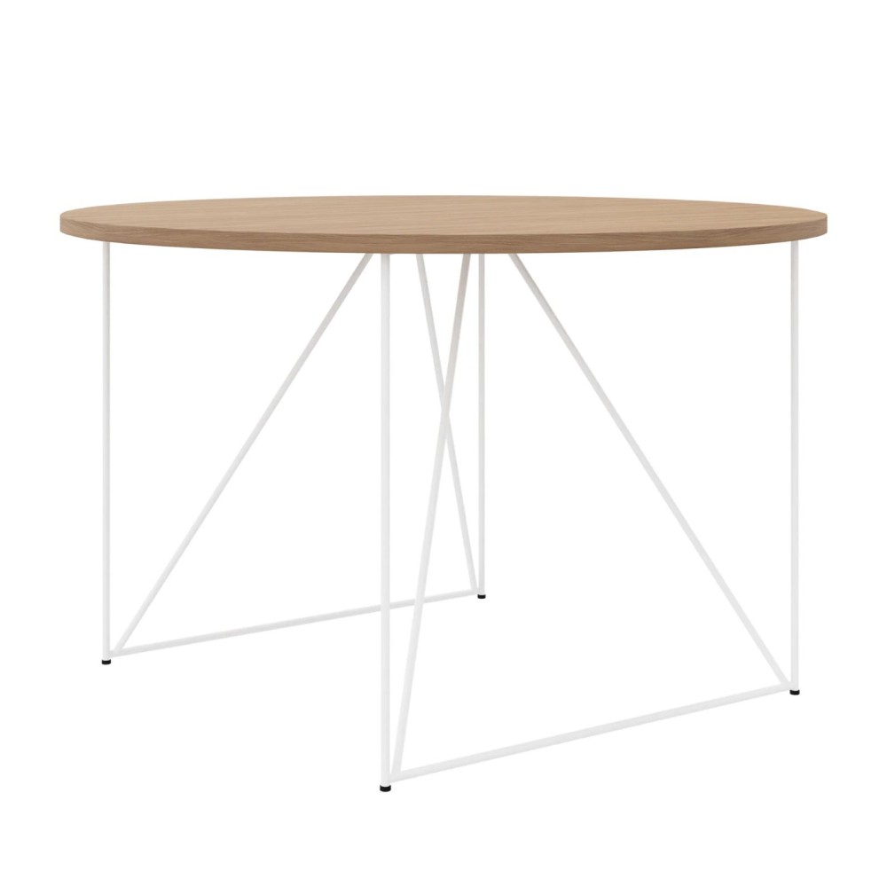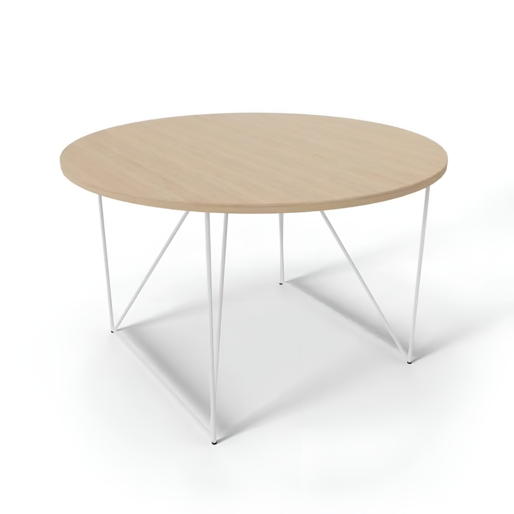 Avec son piètement en métal filaire blanc et son plateau rond Ø120 cm, la table AIR apporte une touche contemporaine et épurée à ta salle de réunion. Son design léger et son esthétique minimaliste s’intègrent parfaitement dans les espaces collaboratifs modernes.