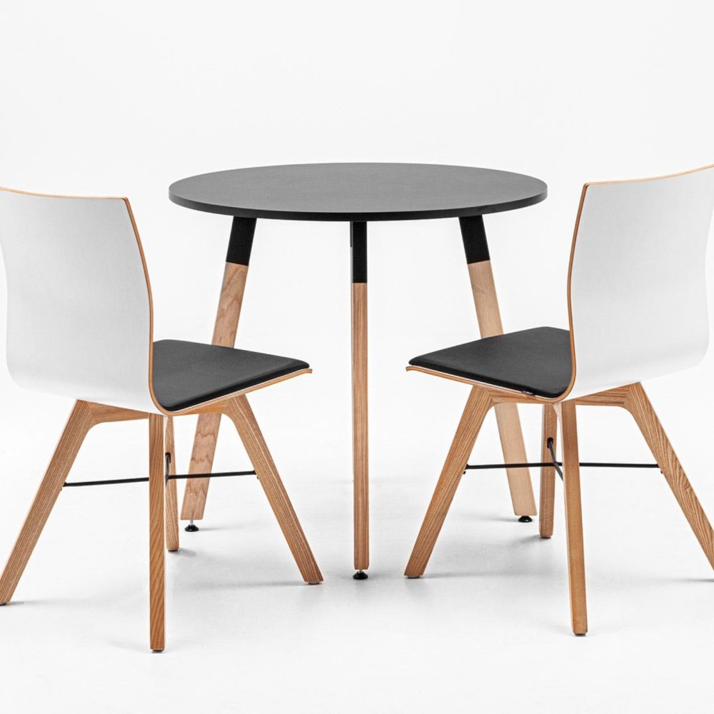 Le contraste entre le plateau noir et le bois naturel du piètement donne à la table Spin une identité visuelle forte tout en restant sobre et équilibrée.