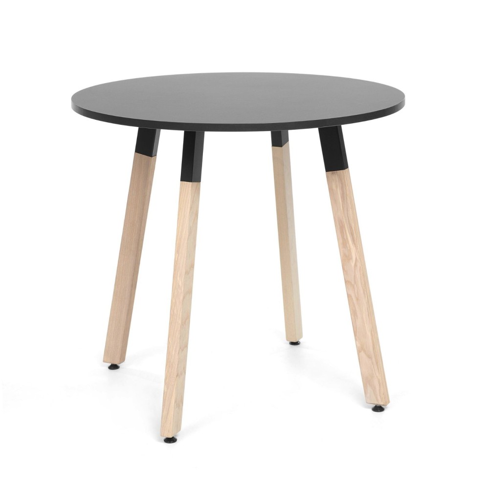 La table ronde Spin apporte une touche chaleureuse et contemporaine dans les environnements professionnels. Son plateau noir associé à un piètement en bois incliné crée un mobilier élégant, idéal pour aménager des espaces de réunion informels ou des zones collaboratives.