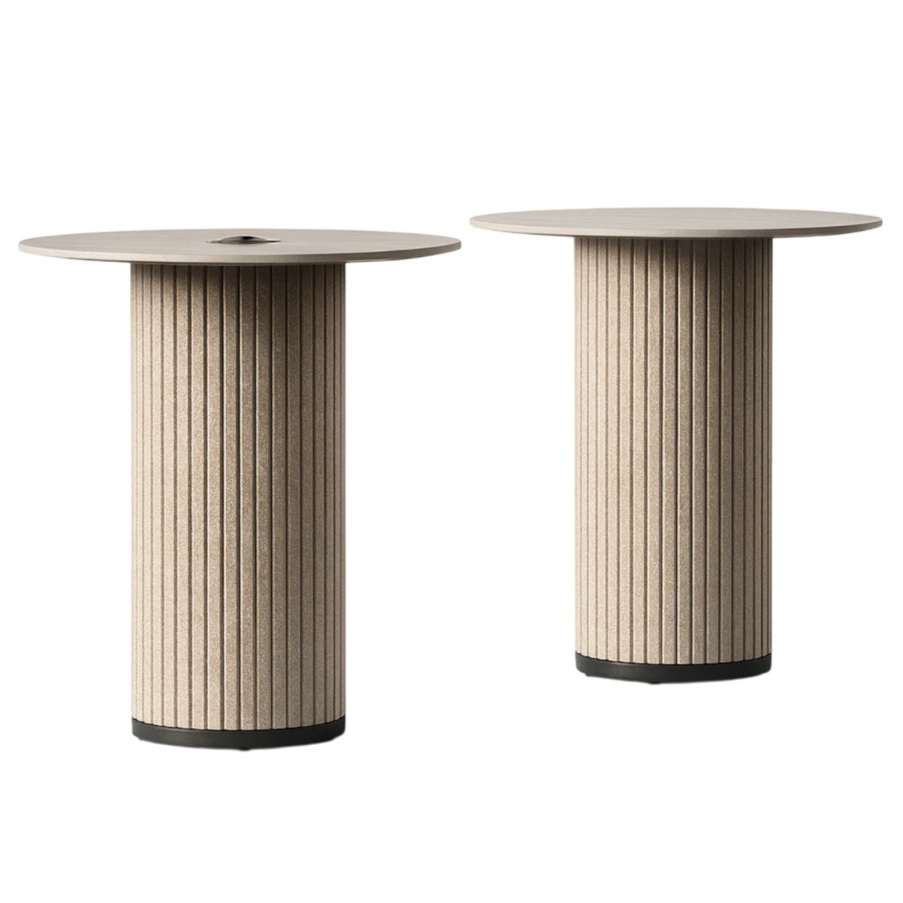 Le format rond favorise les échanges visuels et la participation active de tous les utilisateurs. Sa hauteur de 1050 mm la rend parfaitement adaptée aux discussions dynamiques, ateliers en équipe ou pauses actives.