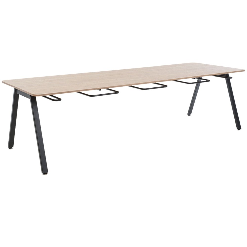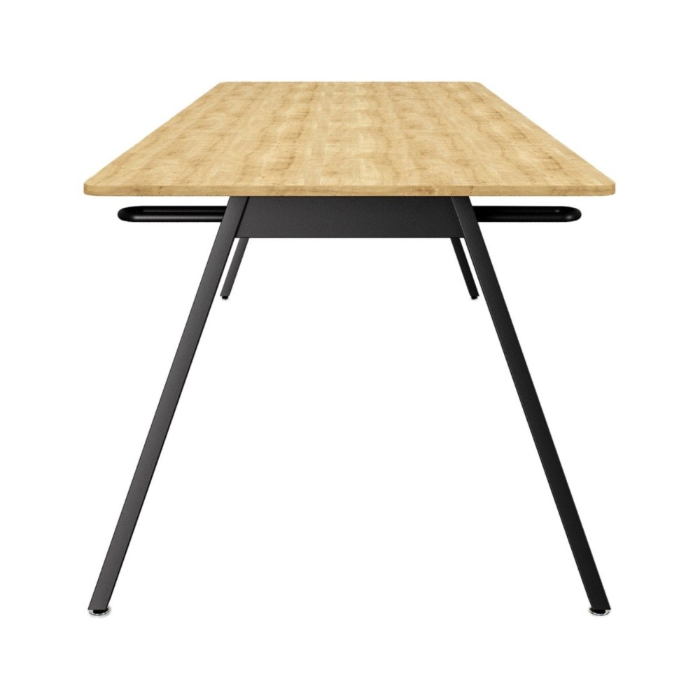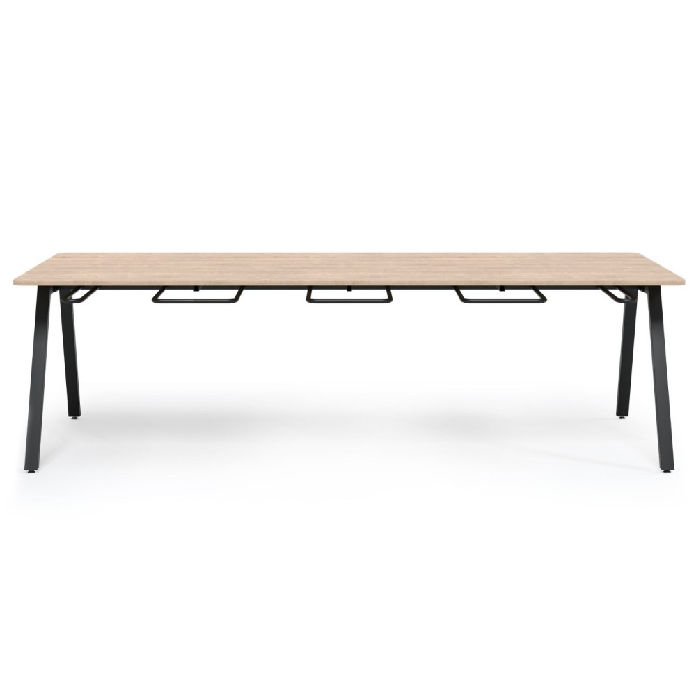 La combinaison du plateau finition bois et du piètement métallique apporte un style chaleureux et contemporain. Son design minimaliste s’intègre facilement dans les espaces collectifs modernes tout en garantissant une excellente stabilité pour un usage professionnel intensif.